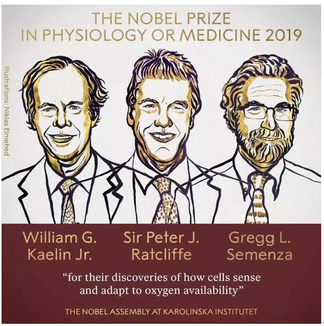 10月7日,美英三位科学家威廉·凯林、彼得·拉特克利夫、格雷格·塞门扎,获得2019年诺贝尔生理学或医学奖,以表彰他们“发现细胞如何感知和适应氧可用性”。