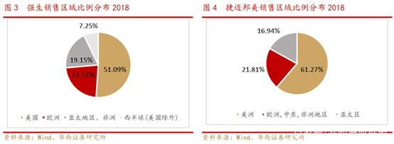 如强生医疗51.1%的业务收入来源于美洲,20.5%来源于欧洲,19.2%来源于亚太;而捷迈邦美61.3%的业务来源于美洲,21.8%来源于欧洲、非洲和中东,16.9%来源于亚太地区。清晰看到,国外骨科巨头具体的业务收入不依赖于单一国家。