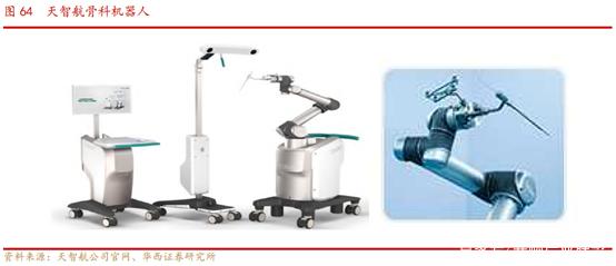骨科手术机器人能够基于术中 3D 图像与2D 图像进行手术空间映射和手术路径规划,实现精准、微创的手术效果,同时大幅降低手术辐射,引导医生按照智能标准完成手术,还能够实现多种高难度手术如上颈椎手术,并且缩短医生的培训时间。而国内的北京天智航2010 年第一代骨科机器人导航定位系统获得医疗器械注册许可证,并在2012 和2016 年进行了产品升级。以下是天智航骨科机器人图: